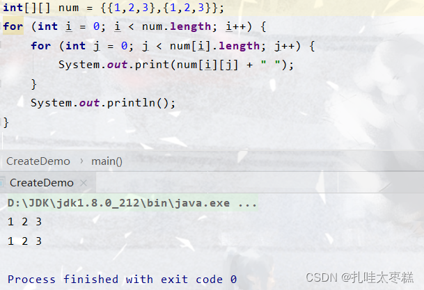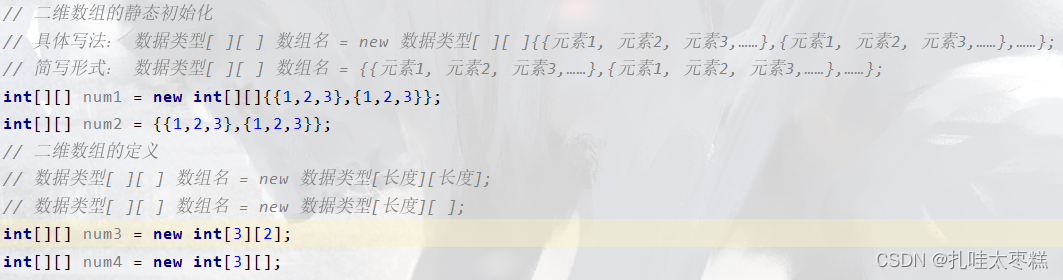 如果定义语句是int[ ][ ] num = new int[3][ ];的话,num[行索引][列索引]的输出为0,num[行索引]的输出是null。