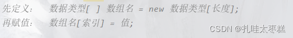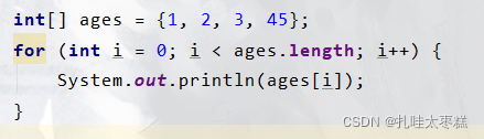 ⚠ 数组一旦定义出来,它的类型和长度就固定好了,若是存放其他类型的元素会在编译时就无法通过,若是访问长度以外的元素会抛IArrayIndexOutOfBoundsException (数组索引越界异常)。 但是数组中的元素值并不固定,可以使用赋值的形式对数组中的元素进行改变。