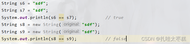 字符串的值判等要用equals方法:字符串1.equals(字符串2),前面讲过,字符串变量存储的是字符串对象的地址,如果简单地使用 == 进行判等的话比对的是两个字符串对象的地址值,有时候虽然两个字符串的值相等,但是对象的地址值却不一样,返回的结果就与我们所期望的值判等结果所不一样