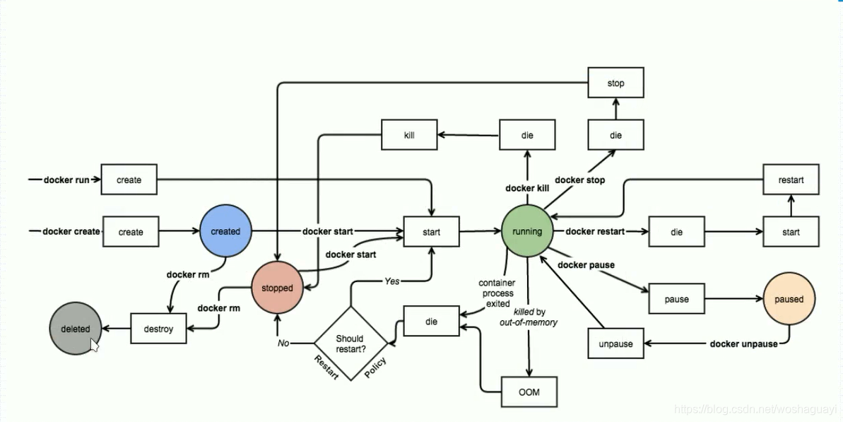 docker client发送容器管理请求后,由docker daemon接受并处理请求,当docker client 接收到返回的请求相应并简单处理后,docker client 一次完整的生命周期就结束了,当需要继续发送容器管理请求时,用户必须再次通过docker可以执行文件创建docker client。