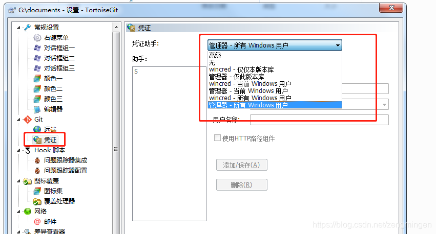 当TortoiseGi默认设置了凭证助手为“管理器-所有windows用户”,每次向远程git推送时,都会去windows的凭证管理器里读取值,然后推送。
