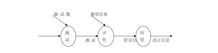 为了保证“共享学习室小程序”的质量,使其能够稳定的运行,并排除其可能存在的未知隐患。解除软件可能存在的故障,理清楚测试与纠错的关系,如图6-1所示。